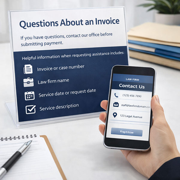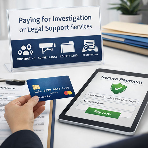 If you have received an invoice for service of process or legal support services, use the secure payment option above to complete your transaction. Include your invoice number or case reference to ensure the payment is applied correctly.